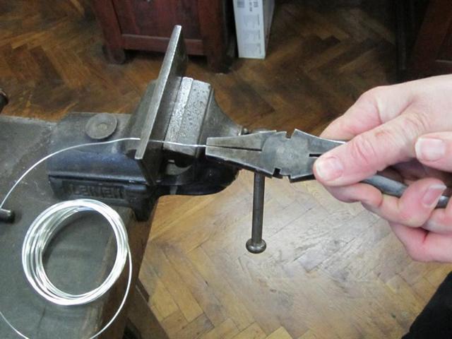 Der Draht wird gewickelt und mit der Säge